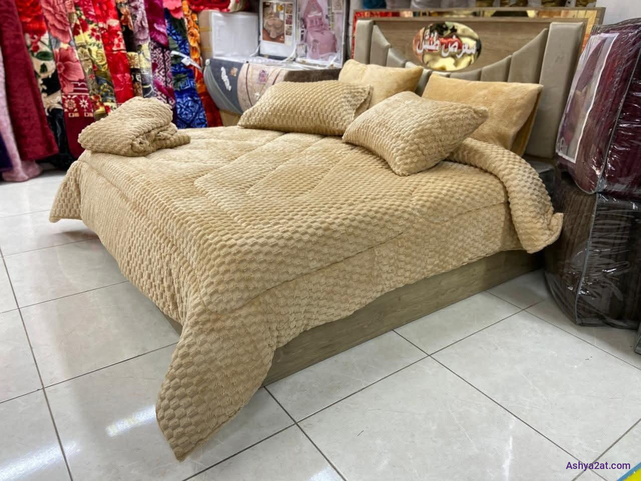 الوصف :لحاف مجوز كنج سايز ٢٤٥-٢٣٠ ، كفر مطاط٢٠-٢٠٠-٢٠٠ ، وجه مخده عدد ٢ (٧٠-٥٠)سم ،مريحين جدا للاستخدام
