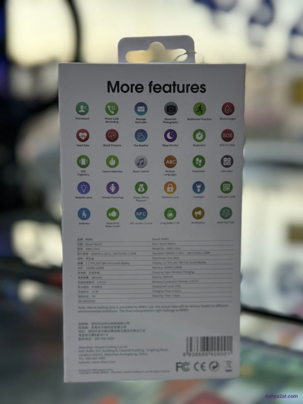 الوصف : ساعة ذكية ضد الماء تدعم جميع الخصائص ومكفولة
